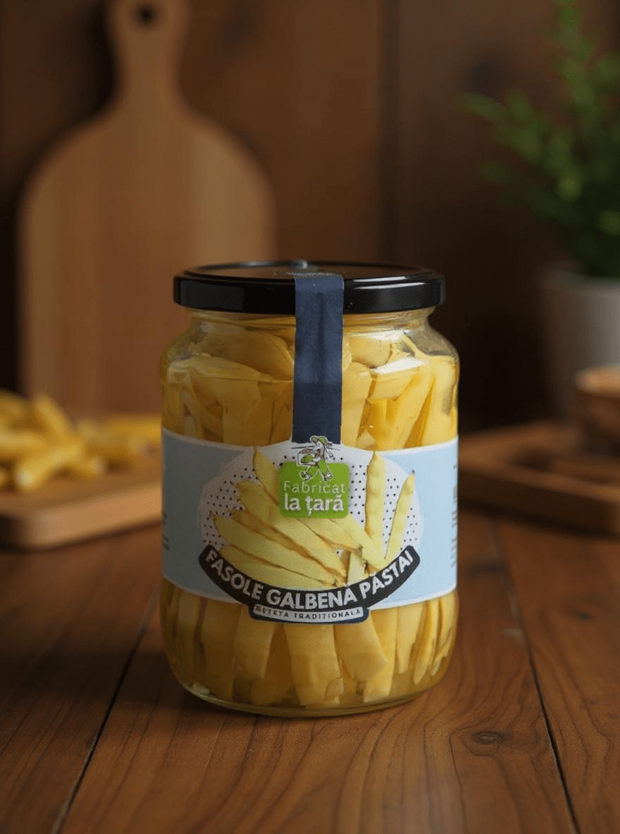 Fabricat la Țară a conservat atent păstăile de fasole galbenă pentru a păstra textura lor crocantă și gustul proaspăt. Sunt perfecte pentru salate, supe sau garnituri.
